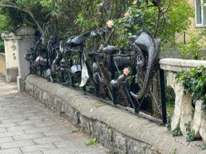 Whilst back in Clifton, to drop back keys, I spotted some wholly unique and slightly surreal iron railings. They made me smile; especially the iron lizard which appeared to look all knowing surrounding the comings and goings of his street.